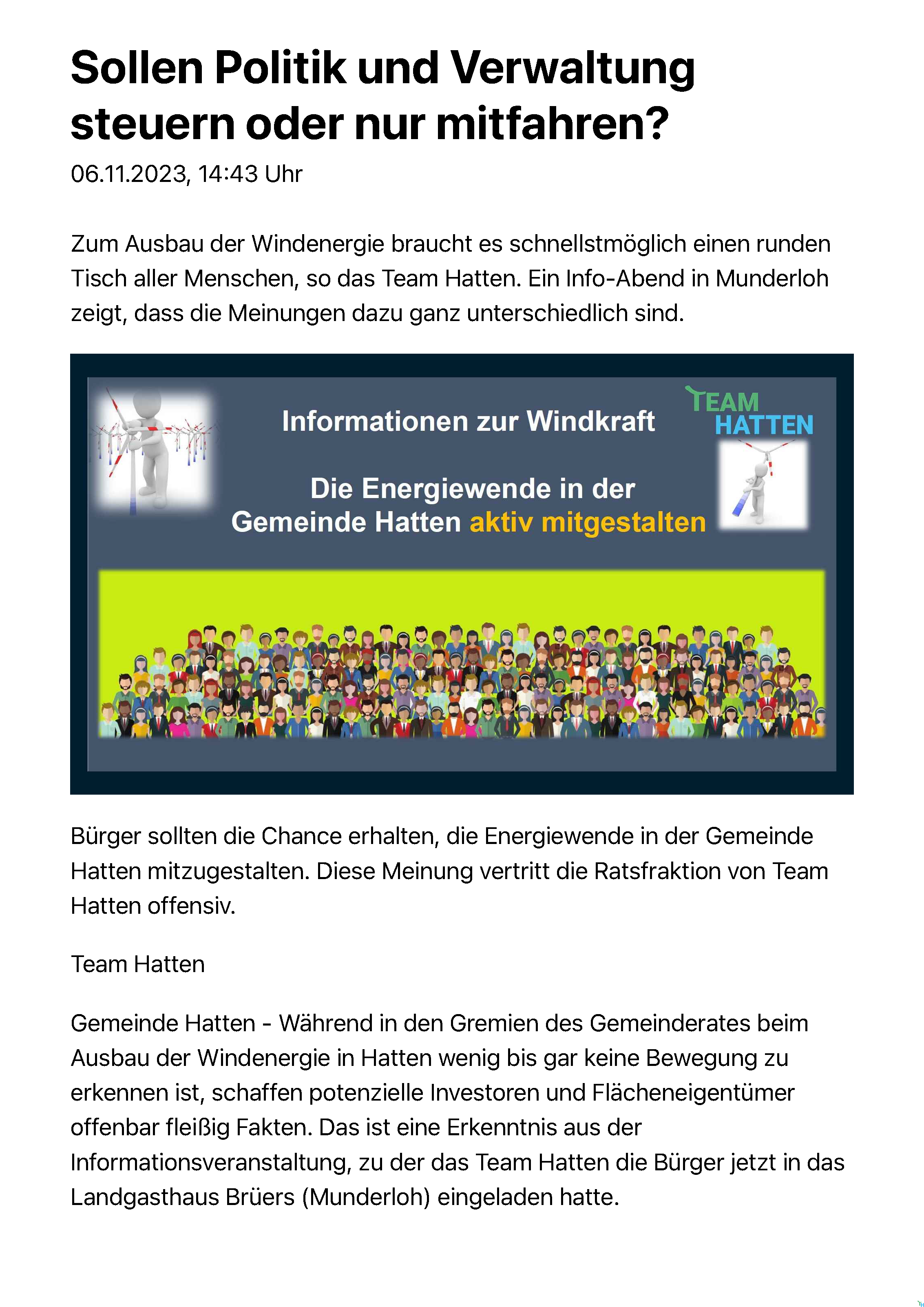 Wir sehen uns als überparteilich, sachorientiert und jeder darf und soll seine eigene Meinung haben.