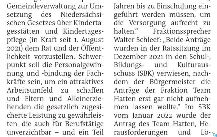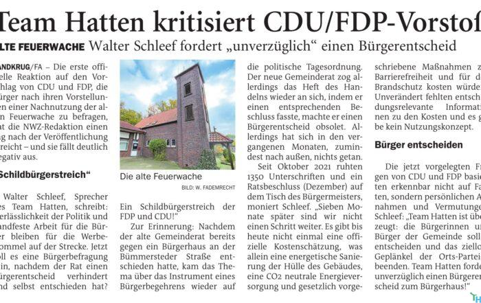 Team Hatten kritisiert CDU/FDP-Vorstoß